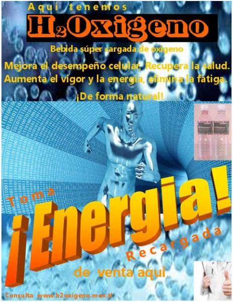 P R E S E N T A M O S ¿Que es H2Oxigeno? Parece agua natural de manantial y sabe a agua natural de manantial. Pero es una bebida revolucionaria científicamente diseñada para mejorar el desempeño celular mientras aumenta el vigor y la energía. Los beneficios de Naturom H2Oxigeno. El oxígeno es uno de los elementos más importantes de todos los organismos vivos. Nuestro cuerpo no puede funcionar sin oxígeno. Por lo tanto, no es de extrañar que el aumento de la utilización de oxígeno, nos de una respuesta saludable que puede ayudar a apoyar: - Aumento de la resistencia - Aumento de los niveles de energía - Mejora la absorción de vitaminas, minerales, aminoácidos, proteínas y Neutraliza el exceso de acidez -Desintoxicante. -otros nutrientes importantes - Ayuda a recuperarse de la fatiga - Mantiene el sistema inmunitario saludable - Una mayor concentración y el estado de alerta - Alivia el estrés y la ansiedad -Mejora la vista. -mejora la concentracion -Incrementa el rendimiento sexual, etc. Nuestra Agua súper cargada de oxigeno de calidad Premium pasa por un avanzado proceso de purificación y de reestructuración molecular asi como la aplicacion de estimulos auditivos de frecuencias especificas de sonido dando como resultado agua con millones de antioxidantes: Con un Ph de 8 (alcalina), Súper cargada de oxígeno, con valores negativos de ORP (POTENCIAL DE REDUCCION DE OXIDACION) de - 200. ¿QUE ES UN ANTIOXIDANTE?
